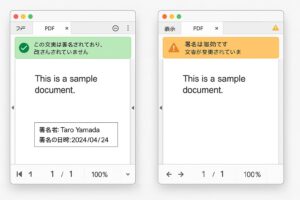 電子署名には署名日時・証明局の情報も含まれており、あとから「いつ・誰が」署名したかを確認できます。