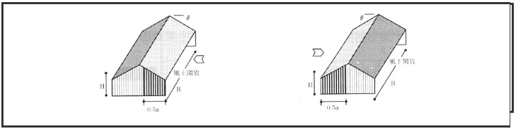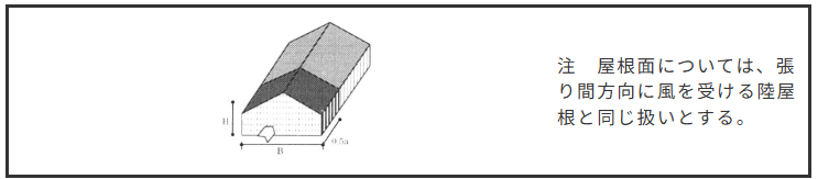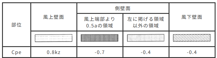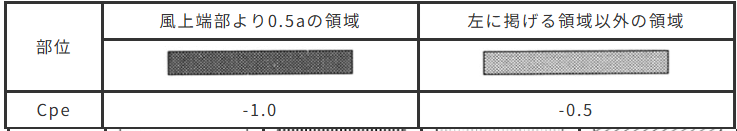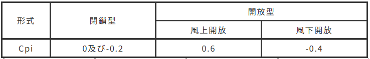 風力係数Cfは、外圧係数Cpeと内圧係数Cpiの差で求められます。