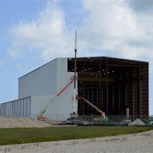 SpaceXがPad 39A近くに建設した格納庫。Falcon 9やFalcon Heavyを横向きで組み立て、5基同時に並べられる贅沢仕様。